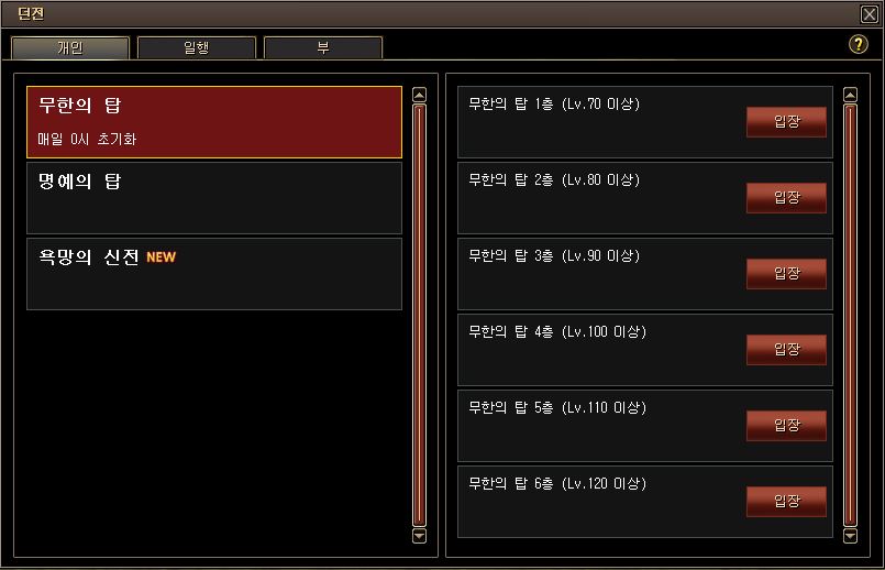 일행용 무한의 탑은 일행 상태에서만 입장할 수 있습니다.