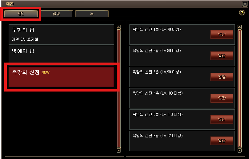 욕망의 신전은 프리미엄 던전으로, 출몰하는 몬스터를 처치 시 대량의 경험치를 획득할 수 있습니다.